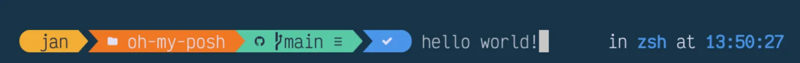 1 2 3 4 5 6 7 8 9 10 11 12 13 14 curl -s https://ohmyposh.dev/install.sh | bash -secho "oh-my-posh init fish --config 'jandedobbeleer' | source" >> ~/.config/fish/config.fishexec fish